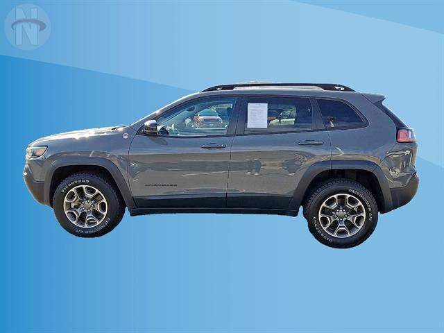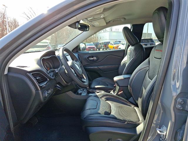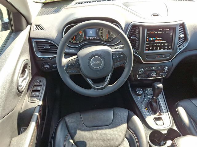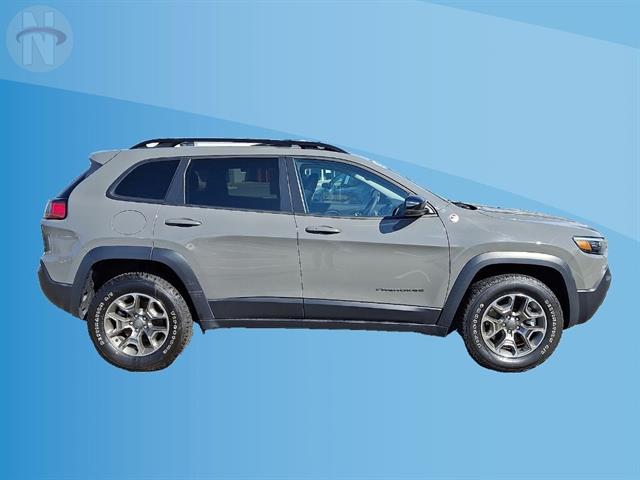 Conquer any terrain with this rugged 2022 Jeep Cherokee Trailhawk 4x4 SUV, finished in sleek gray. Powered by a robust 3.2L V6 engine and 9-speed automatic transmission, it delivers the performance and dependability Jeep is known for. This Trailhawk is loaded with off-road features, including hill descent assist, front and rear tow hooks, rear locking differential, and off-road tuned suspension. Enjoy peace of mind with advanced safety tech like lane keeping assist, blind spot monitoring, front and rear automatic emergency braking, rear cross traffic alert, and a rearview camera system. Inside, the 8.4-inch Uconnect touchscreen supports Apple CarPlay, Android Auto, and SiriusXM, while the heated leather steering wheel, heated front seats, dual-zone climate control, and customizable instrument cluster provide comfort and convenience. Black roof rails, LED headlights, and rugged black accents complete the bold look. With spacious seating, split-folding rear seats, and ample cargo space, this Cherokee Trailhawk is perfect for your next adventure. Schedule your test drive today and experience true Jeep capability.