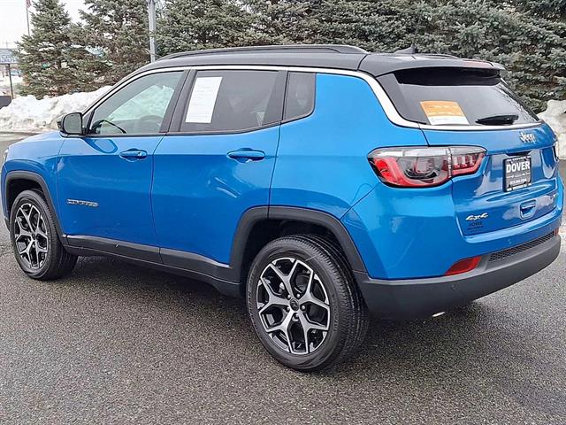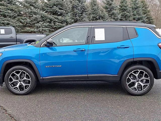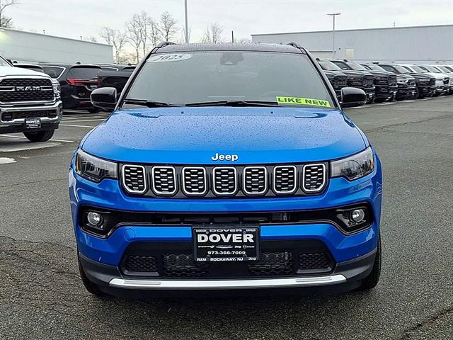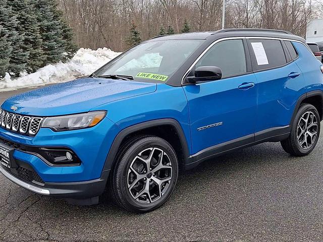 Take command of the road in this stunning Blue 2025 Jeep Compass Limited 4x4 SUV with only 1,095 miles! Enjoy a spirited 2.0L Turbo I4 engine paired with an 8-speed automatic transmission and advanced 4WD system for confident driving in any season. Loaded with premium features including leatherette upholstery, heated side mirrors, adaptive cruise control, lane keeping assist, and a 10.1-inch Uconnect touchscreen with wireless Apple CarPlay & Android Auto. Safety is top-notch with front automatic emergency braking, pedestrian detection, blind spot monitor, and rear cross traffic alert. Stay connected with Alexa and SiriusXM Guardian app compatibility, plus hotspot Wi-Fi. Comfort features include dual-zone automatic climate control, power driver seat with lumbar support, and a customizable 7-inch digital instrument cluster. This Compass blends capability, technology, and style in one low-mileage package-don't miss out!