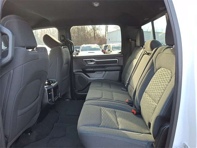 Bed Utility Group (Exterior 115V AC Outlet, MOPAR 4 Adjustable Cargo Tie-Down Hooks, MOPAR Spray In Bedliner, and Pick-Up Box Lighting), Big Horn Level 1 Equipment Group (115V Auxiliary Power Outlet, 2nd Row In Floor Storage Bins, 400W Inverter, Auto Power-Folding Mirrors, Auto-Dimming Exterior Driver Mirror, Auto-Dimming Rear-View Mirror, Black Exterior Mirrors, Black Premium Power Mirrors, Convex Wide-Angle Exterior Mirror Insert, Exterior Mirrors Courtesy Lamps, Exterior Mirrors w/Heating Element, Exterior Mirrors w/Supplemental Signals, Glove Box Lamp, Heated Front Seats, Heated Steering Wheel, Leather Wrapped Steering Wheel, Power 2-Way Driver Lumbar Adjust, Power Adjust 8-Way Driver Seat, Power Adjustable Pedals, Rear Power Sliding Window, Rear Window Defroster, Steering Wheel Mounted Audio Controls, Sun Visors w/Illuminated Vanity Mirrors, and Universal Garage Door Opener), Quick Order Package 23Z Big Horn (Big Horn Badge), FCA US LLC Certified Pre-Owned Certified, 3 Rear Seat Head Restraints, 3.21 Rear Axle Ratio, 4 Way Front Headrests, 4-Wheel Disc Brakes, 4G LTE Wi-Fi Hot Spot, 6 Speakers, ABS brakes, Air Conditioning, Alloy wheels, AM/FM radio, Apple CarPlay/Android Auto, Auto High-beam Headlights, Brake assist, Bumpers: chrome, Cloth Bench Seat, Compass, Connectivity - US/Canada, Delay-off headlights, Driver door bin, Dual front impact airbags, Dual front side impact airbags, Electronic Stability Control, Front anti-roll bar, Front Center Armrest w/Storage, Front fog lights, Front reading lights, Front Seat Back Map Pockets, Front wheel independent suspension, Fully automatic headlights, GPS Antenna Input, Heated door mirrors, Illuminated entry, Integrated Voice Command w/Bluetooth, Low tire pressure warning, Manual Adjust 4-Way Front Passenger Seat, Manual Folding Exterior Mirrors, Occupant sensing airbag, Outside temperature display, Overhead airbag, Overhead console, Panic alarm, ParkView Rear Back-Up Camera, Passenger door bin, Passenger vanity mirror, Power door mirrors, Power steering, Power windows, Radio data system, Radio: Uconnect 5 W w/8.4" Display, RAM Grille Badge - Chrome, Rear 60/40 Folding Seat, Rear anti-roll bar, Rear seat center armrest, Rear step bumper, Remote keyless entry, Speed control, Split folding rear seat, Supplier Part Tracking (J-1), Tachometer, Telescoping steering wheel, Tilt steering wheel, Traction control, Trip computer, USB Host Flip, Variably intermittent wipers, Voltmeter, and Wheels: 18" x 8" Cast-Aluminum Painted.