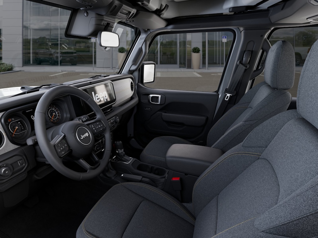 Convenience Group (2-Door Passive Entry, Front Door Locks, Air Conditioning with Auto Temp Control, Air Filtering, Cluster 7.0" TFT Color Display, Emergency/Assistance Call, Heated Front Seats, Heated Steering Wheel, and Universal Garage Door Opener), Quick Order Package 22S Sport S (Advanced Brake Assist, Automatic Headlamps, Corning Gorilla Glass, Deep Tint Sunscreen Windows, Enhanced Adaptive Cruise Control, Full Speed Forward Collision Warning Plus, Power Heated Mirrors, Premium Wrapped Steering Wheel, Security Alarm, Sun Visors with Illuminated Vanity Mirrors, and Wheels: 17" x 7.5" Gray), 12.3" Touchscreen Display, 3.45 Overall Top Gear Ratio, 4-Wheel Disc Brakes, 4G LTE Wi-Fi Hot Spot, 8 Speakers, ABS brakes, Air Conditioning, AM/FM radio: SiriusXM with 360L, Apple CarPlay, Apple CarPlay/Android Auto, Aux Battery, Black 3-Piece Hard Top, Brake assist, Cloth Low-Back Bucket Seats, Compass, Connectivity - US/Canada, Delay-off headlights, Driver door bin, Driver vanity mirror, Dual front impact airbags, Dual front side impact airbags, Electronic Stability Control, For More Info, Call 800-643-2112, Freedom Panel Storage Bag, Front anti-roll bar, Front Bucket Seats, Front Center Armrest w/Storage, Front fog lights, Front reading lights, Google Android Auto, Illuminated entry, Integrated Center Stack Radio, Integrated roll-over protection, Low tire pressure warning, Non-Lock Fuel Cap Without Discriminator, Normal Duty Suspension, Occupant sensing airbag, Outside temperature display, Overhead airbag, Panic alarm, ParkView Rear Back-Up Camera, Passenger door bin, Passenger vanity mirror, Power steering, Power windows, Radio data system, Radio: Uconnect 5 with 12.3" Display, Rear anti-roll bar, Rear reading lights, Rear Window Defroster, Rear Window Wiper/Washer, Remote keyless entry, SiriusXM Radio Service, SiriusXM with 360L, Speed control, Split folding rear seat, Steering wheel mounted audio controls, Stop-Start Dual Battery System, Tachometer, Telescoping steering wheel, Tilt steering wheel, Traction control, Trip computer, Variably intermittent wipers, and Wheels: 17" x 7.5" Black Steel Styled.