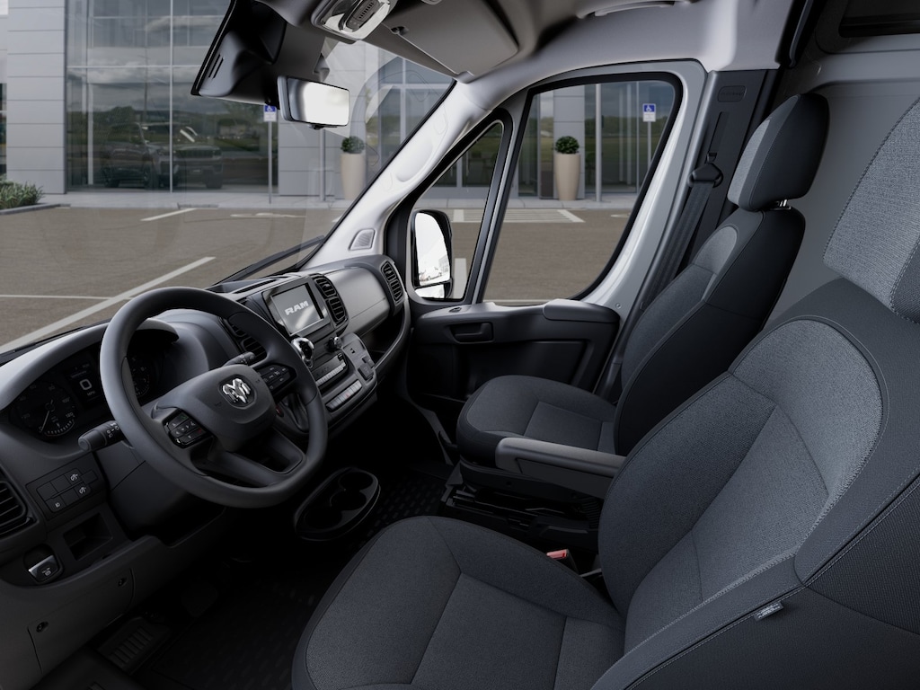 Convenience Group (Exterior Mirrors w/Heating Element, Exterior Mirrors w/Supplemental Signals, Front Fog Lamps, Power Adjust Mirrors, Power Folding/Heated Mirrors, Power-Adjustable Convex Aux Mirrors, Power-Folding Mirrors, and Rear Cargo LED Lamp), Power Group (100 Amp Battery, 115V Auxiliary Power Outlet, and 12V Rear Auxiliary Power Outlet), Quick Order Package 22B Tradesman w/Pass Seat (4-Way Manual Adjust Front Passenger Seat and Passenger Bucket Seat), 4 Speakers, 4-Wheel Disc Brakes, 4.08 Axle Ratio, 4G LTE Wi-Fi Hotspot, ABS brakes, Adaptive Cruise Control w/Stop & Go, Air Conditioning, AM/FM radio: SiriusXM, Apple CarPlay, Apple CarPlay/Android Auto, Black/Gray Seats, Bodyside moldings, Brake assist, Class IV Receiver Hitch, Cloth Bucket Seats, Connectivity - US/Canada, Driver door bin, Driver Seat Armrest, Driver's Seat Mounted Armrest, Electronic Stability Control, For Details, Visit DriveUconnect.com, For More Info, Call 800-643-2112, Front anti-roll bar, Front Bucket Seats, Front License Plate Bracket, Front reading lights, Front wheel independent suspension, Global Telematics Box Module (TBM), Google Android Auto, GPS Antenna Input, Heavy Duty Suspension, Illuminated entry, Low tire pressure warning, Manufacturer's Statement of Origin, MOPAR Cargo Compartment Floor Mat, Outside temperature display, Overhead airbag, Overhead console, ParkSense Rear Park Assist System, ParkView Rear Back-Up Camera, Passenger door bin, Power steering, Power windows, Radio: Uconnect 5 w/7" Display, Remote keyless entry, SiriusXM Radio Service, Steering wheel mounted audio controls, Tachometer, Telescoping steering wheel, Traction control, Trip computer, Turn signal indicator mirrors, Variably intermittent wipers, Wheel Center Cap, and Wheels: 16" x 6.0" SteeL.