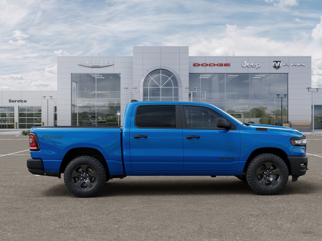 Hydro Blue Pearlcoat 2026 Ram 1500 4WD 8-Speed Automatic 3.0L I6 Bed Utility Group (400W Inverter, Exterior 115V AC Outlet, MOPAR 4 Adjustable Cargo Tie-Down Hooks, MOPAR Deployable Bed Step, MOPAR Spray in Bedliner, and Pick-Up Box Lighting), Quick Order Package 21B Warlock (115V Auxiliary Power Outlet, Cluster 7.0" TFT Color Display, E-Locker Rear Axle, Front LED Fog Lamps, Front Performance Tuned Shock Absorbers, MOPAR Front and Rear Rubber Floor Mats, Raised Ride Height, Rear Performance Tuned Shock Absorbers, Selec-Speed Control, Tow Hooks, Warlock Decal, and Wheels: 18" x 8.0" Black Painted Aluminum), Tradesman Level 1 Equipment Group (2nd Row in Floor Storage Bins, Cloth Bench Seat, Front and Rear Floor Mats, Rear Power Sliding Window, SiriusXM Radio Service, and SiriusXM Satellite Radio), 4 Way Front Headrests, 4-Wheel Disc Brakes, 48V Belt Starter Generator, 4G LTE Wi-Fi Hot Spot, 6 Speakers, ABS brakes, Air Conditioning, AM/FM radio, Apple CarPlay, Apple CarPlay/Android Auto, Auto High-beam Headlights, Black Exterior Mirrors, Brake assist, Compass, Connectivity - US/Canada, Delay-off headlights, Driver door bin, Dual front impact airbags, Dual front side impact airbags, Electronic Stability Control, Exterior Mirrors with Heating Element, For Details Visit DriveUconnect.com, Front anti-roll bar, Front Center Armrest, Front License Plate Bracket, Front reading lights, Front wheel independent suspension, Fully automatic headlights, Global Telematics Box Module, Google Android Auto, GPS Antenna Input, Heated door mirrors, Heavy Duty Vinyl 40/20/40 Split Bench Seat, Illuminated entry, Integrated Center Stack Radio, Integrated Voice Command with Bluetooth, Low tire pressure warning, Manual Adjust 4-Way Driver Seat, Manual Adjust 4-Way Front Passenger Seat, Manual Folding Exterior Mirrors, Occupant sensing airbag, Outside temperature display, Overhead airbag, Overhead console, Panic alarm, ParkView Rear Back-Up Camera, Passenger door bin, Passenger vanity m