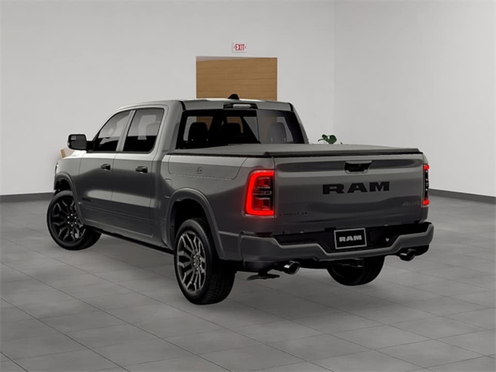 Bed Utility Group (Exterior 115V AC Outlet and MOPAR 4 Adjustable Cargo Tie-Down Hooks), Limited Level An Equipment Group (12-Way/1-Way Trailer Connector, 14.4" Touchscreen Display, 240 Amp Alternator, 4G LTE Wi-Fi Hot Spot, Apple CarPlay, Connected Travel & Traffic Services, Connectivity - US/Canada, Disassociated Touchscreen Display, Drowsy Driver Detection, Evasive Steer Assist, Global Telematics Box Module (TBM), Google Android Auto, GPS Antenna Input, GPS Navigation, Hands-Free Active Driving Assist System, HD Radio, Heads-Up Display, Integrated Center Stack Radio, Integrated Voice Command w/Bluetooth, Intersection Collision Assist System, LED CHMSL Lamp, Radio: Uconnect 5 Nav w/14.4" Display, RamBox Cargo Management System, SiriusXM Radio Service, SiriusXM w/360L, Smartphone As A Key Capable, Surround View Camera System, Traffic Sign Recognition, Tri-Fold Tonneau Cover, and USB Host Flip), Night Edition (Accent Color Door Handles, Accent Color Premium Power Mirrors, Accent Color Tailgate Handle, Auto Power-Folding Mirrors, Auto-Dimming Exterior Driver Mirror, Black Day Light Opening Moldings, Black Exterior Truck Badging, Black Grille Surround Texture 7 Black, Black Headlamp Bezels, Black Painted Exterior Mirrors Caps, Black Tail Lamp Bezels, Body Color Front Bumper, Body Color Rear Bumper w/Step Pads, Convex Wide-Angle Exterior Mirror Insert, Dual Exhaust w/Black Tips, Exterior Mirrors Courtesy Lamps, Exterior Mirrors w/Heating Element, Exterior Mirrors w/Memory, Exterior Mirrors w/Supplemental Signals, Pirelli Brand Tires, RAM Grille Badge - Black, Sport Performance Hood, and Wheels: 22" x 9" Premium Black Aluminum), Quick Order Package 22M Limited, 19 Speakers, 3.92 Rear Axle Ratio, 4-Wheel Disc Brakes, ABS brakes, Active Noise Control System, Adjustable pedals, Air Conditioning, Alloy wheels, AM/FM radio, Apple CarPlay/Android Auto, Audio memory, Auto High-beam Headlights, Auto-dimming door mirrors, Auto-dimming Rear-View mirror, Auto-leveling suspension, Automatic temperature control, Bodyside moldings, Brake assist, Bumpers: chrome, Chrome Exterior Mirrors, Compass, Delay-off headlights, Dome Dual LED Reading Lamp, Driver door bin, Driver vanity mirror, Dual front impact airbags, Dual front side impact airbags, Dual-Pane Panoramic Sunroof, Electronic Stability Control, Exterior Parking Camera Rear, Front anti-roll bar, Front Bucket Seats, Front Center Armrest w/Storage, Front dual zone A/C, Front fog lights, Front License Plate Bracket, Front reading lights, Front wheel independent suspension, Fully automatic headlights, Garage door transmitter, Genuine wood console insert, Genuine wood dashboard insert, Genuine wood door panel insert, Heated door mirrors, Heated front seats, Heated rear seats, Heated steering wheel, Illuminated entry, Leather steering wheel, LED Dome/Reading Lamp, Low tire pressure warning, Memory seat, Navigation System, Occupant sensing airbag, Outside temperature display, Overhead airbag, Overhead console, Panic alarm, Passenger door bin, Passenger vanity mirror, Pedal memory, Power door mirrors, Power driver seat, Power passenger seat, Power steering, Power windows, Premium Quilted Leather Bucket Seats, Radio data system, Radio: Uconnect 5 Nav w/12.0" Display, Rain sensing wipers, Rear anti-roll bar, Rear reading lights, Rear seat center armrest, Rear step bumper, Rear window defroster, Remote keyless entry, Security system, Speed control, Split folding rear seat, Steering wheel mounted audio controls, Tachometer, Telescoping steering wheel, Tilt steering wheel, Traction control, Trip computer, Turn signal indicator mirrors, Variably intermittent wipers, Ventilated front seats, Ventilated rear seats, Voltmeter, and Wheels: 20" x 9" Premium Paint/Polished.