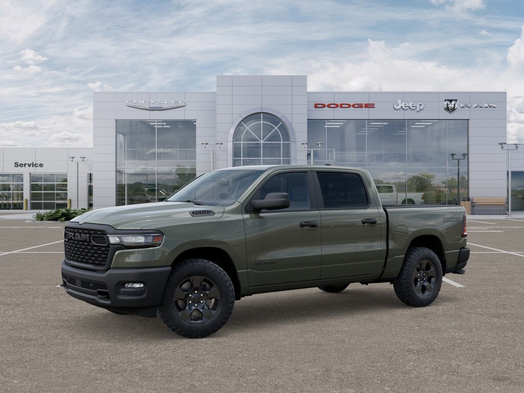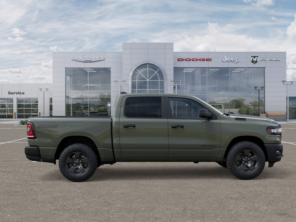 Bed Utility Group (400W Inverter, Exterior 115V AC Outlet, MOPAR 4 Adjustable Cargo Tie-Down Hooks, MOPAR Deployable Bed Step, MOPAR Spray in Bedliner, and Pick-Up Box Lighting), Quick Order Package 21B Warlock (115V Auxiliary Power Outlet, Cluster 7.0" TFT Color Display, E-Locker Rear Axle, Front LED Fog Lamps, Front Performance Tuned Shock Absorbers, MOPAR Front and Rear Rubber Floor Mats, Raised Ride Height, Rear Performance Tuned Shock Absorbers, Selec-Speed Control, Tow Hooks, Warlock Decal, and Wheels: 18" x 8.0" Black Painted Aluminum), Tradesman Level 1 Equipment Group (2nd Row in Floor Storage Bins, Cloth Bench Seat, Front and Rear Floor Mats, Rear Power Sliding Window, SiriusXM Radio Service, and SiriusXM Satellite Radio), 4 Way Front Headrests, 4-Wheel Disc Brakes, 48V Belt Starter Generator, 4G LTE Wi-Fi Hot Spot, 6 Speakers, ABS brakes, Air Conditioning, AM/FM radio, Apple CarPlay, Apple CarPlay/Android Auto, Auto High-beam Headlights, Black Exterior Mirrors, Brake assist, Compass, Connectivity - US/Canada, Delay-off headlights, Driver door bin, Dual front impact airbags, Dual front side impact airbags, Electronic Stability Control, Exterior Mirrors with Heating Element, For Details Visit DriveUconnect.com, Front anti-roll bar, Front Center Armrest, Front License Plate Bracket, Front reading lights, Front wheel independent suspension, Fully automatic headlights, Global Telematics Box Module, Google Android Auto, GPS Antenna Input, Heated door mirrors, Heavy Duty Vinyl 40/20/40 Split Bench Seat, Illuminated entry, Integrated Center Stack Radio, Integrated Voice Command with Bluetooth, Low tire pressure warning, Manual Adjust 4-Way Driver Seat, Manual Adjust 4-Way Front Passenger Seat, Manual Folding Exterior Mirrors, Occupant sensing airbag, Outside temperature display, Overhead airbag, Overhead console, Panic alarm, ParkView Rear Back-Up Camera, Passenger door bin, Passenger vanity mirror, Power door mirrors, Power steering, Power windows, Radio data system, Radio: Uconnect 5 W with 8.4" Display, Rear anti-roll bar, Rear Folding Seat, Rear step bumper, Remote keyless entry, Speed control, Supplier Part Tracking (J-1), Tachometer, Telescoping steering wheel, Tilt steering wheel, Traction control, Trailer Brake Control, USB Host Flip, Variably intermittent wipers, Voltmeter, and Wheels: 18" x 7.5" Steel PainteD.
