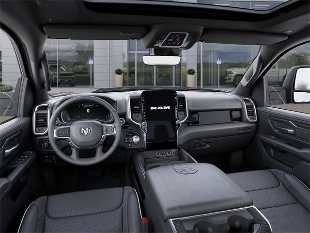 Bed Utility Group (Exterior 115V AC Outlet, MOPAR 4 Adjustable Cargo Tie-Down Hooks, and MOPAR Spray in Bedliner), Laramie Level 2 Equipment Group (14.4" Touchscreen Display, 4G LTE Wi-Fi Hot Spot, Cluster 12" TFT Color Display, Connected Travel and Traffic Services, Connectivity - US/Canada, Front Passenger Interactive Display, GPS Navigation, Harman/Kardon 19 Speaker Premium Sound, Integrated Center Stack Radio, Integrated Voice Command with Bluetooth, Power Tailgate, Radio: Uconnect 5 Nav with 14.4" Display, Rain Sensitive Windshield Wipers, SiriusXM Radio Service, SiriusXM with 360L, and USB Host Flip), Night Edition (Accent Color Door Handles, Accent Color Premium Power Mirrors, Accent Color Tailgate Handle, Anti-Spin Differential Rear Axle, Auto Power-Folding Mirrors, Auto-Dimming Exterior Driver Mirror, Black Exterior Truck Badging, Black Headlamp Bezels, Black Interior Accents, Black Painted Exterior Mirrors Caps, Black Tail Lamp Bezels, Body Color Front Bumper, Body Color Rear Bumper with Step Pads, Convex Wide-Angle Exterior Mirror Insert, Dual Exhaust with Black Tips, Exterior Mirrors Approach Lamps, Exterior Mirrors Courtesy Lamps, Exterior Mirrors with Heating Element, Exterior Mirrors with Memory, Exterior Mirrors with Supplemental Signals, Grille Surround 3 Black Texture 2 Black, Pirelli Brand Tires, Proximity Approach/Departure Lamps, RAM Grille Badge - Black, Sport Performance Hood, and Wheels: 22" x 9" Forged Aluminum), Quick Order Package 27H Laramie, Trailer Tow Group II (Trailer Brake Control, Trailer Light Check, Trailer Reverse Steering Control, and Trailer Tire Pressure Monitoring System), 10 Speakers, 4-Wheel Disc Brakes, ABS brakes, Active Noise Control System, Air Conditioning, Alloy wheels, AM/FM radio: SiriusXM with 360L, Apple CarPlay/Android Auto, Audio memory, Auto High-beam Headlights, Auto-dimming door mirrors, Auto-Dimming Exterior Passenger Mirror, Auto-dimming Rear-View mirror, Automatic temperature control, Black Exterior Mirrors, Black Power-Fold Trailer Tow Mirrors, Brake assist, Bumpers: chrome, Chrome Exterior Mirrors, Compass, Delay-off headlights, Dome Dual LED Reading Lamp, Driver door bin, Driver vanity mirror, Dual front impact airbags, Dual front side impact airbags, Dual-Pane Panoramic Sunroof, Electronic Stability Control, Forward and Reverse Utility Lights, Front anti-roll bar, Front Bucket Seats, Front Center Armrest w/Storage, Front dual zone A/C, Front fog lights, Front License Plate Bracket, Front reading lights, Front wheel independent suspension, Fully automatic headlights, Garage door transmitter, Heated door mirrors, Heated front seats, Heated rear seats, Heated steering wheel, Illuminated entry, Leather steering wheel, Leather Trimmed Bucket Seats, LED Dome/Reading Lamp, Low tire pressure warning, Manufacturer's Statement of Origin, Memory seat, Mirror Clearance/Running Lights, MOPAR Front and Rear Rubber Floor Mats, Navigation System, Occupant sensing airbag, Off-Road Information Pages, Outside temperature display, Overhead airbag, Overhead console, Panic alarm, ParkView Rear Back-Up Camera, Passenger door bin, Passenger vanity mirror, Power Deployable Running Boards, Power door mirrors, Power driver seat, Power passenger seat, Power steering, Power Telescoping Mirrors, Power windows, Power-Adjustable Convex Aux Mirrors, Radio data system, Radio: Uconnect 5 Navigation with 12.0" Display, RAM Grille Badge - Chrome, Rear anti-roll bar, Rear reading lights, Rear seat center armrest, Rear step bumper, Rear Wheelhouse Liners, Remote keyless entry, Security system, Speed control, Split folding rear seat, Steering wheel mounted audio controls, Tachometer, Telescoping steering wheel, Tilt steering wheel, Traction control, Trailer Tow Mirrors, Trip computer, Turn signal indicator mirrors, Variably intermittent wipers, Ventilated front seats, Vo