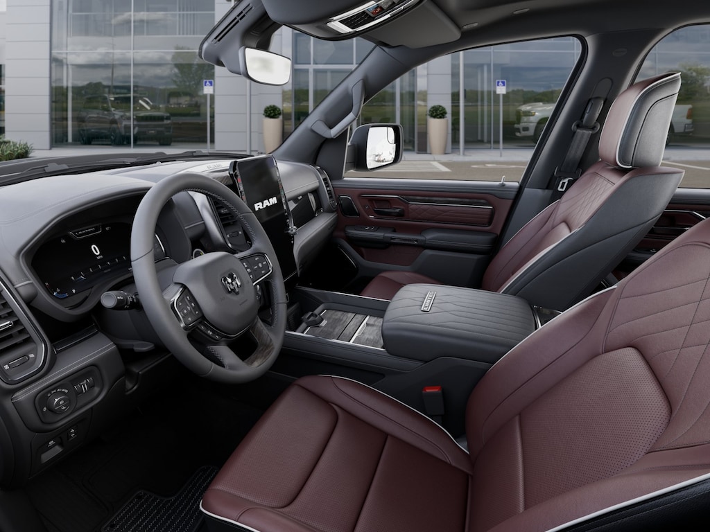 Limited Level An Equipment Group (12-Way/1-Way Trailer Connector, 14.4" Touchscreen Display, 240 Amp Alternator, 4G LTE Wi-Fi Hot Spot, Apple CarPlay, Connected Travel and Traffic Services, Connectivity - US/Canada, Disassociated Touchscreen Display, Drowsy Driver Detection, Evasive Steer Assist, Exterior 115V AC Outlet, Global Telematics Box Module, Google Android Auto, GPS Antenna Input, GPS Navigation, Hands-Free Active Driving Assist System, HD Radio, Heads-Up Display, Integrated Center Stack Radio, Integrated Voice Command with Bluetooth, Intersection Collision Assist System, LED CHMSL Lamp, Radio: Uconnect 5 Nav with 14.4" Display, RamBox Cargo Management System, SiriusXM Radio Service, SiriusXM with 360L, Smartphone as a Key Capable, Surround View Camera System, Traffic Sign Recognition, Tri-Fold Tonneau Cover, and USB Host Flip), Night Edition (Accent Color Door Handles, Accent Color Premium Power Mirrors, Accent Color Tailgate Handle, Auto Power-Folding Mirrors, Auto-Dimming Exterior Driver Mirror, Black Day Light Opening Moldings, Black Exterior Truck Badging, Black Grille Surround Texture 7 Black, Black Headlamp Bezels, Black Painted Exterior Mirrors Caps, Black Tail Lamp Bezels, Body Color Front Bumper, Body Color Rear Bumper with Step Pads, Convex Wide-Angle Exterior Mirror Insert, Dual Exhaust with Black Tips, Exterior Mirrors Courtesy Lamps, Exterior Mirrors with Heating Element, Exterior Mirrors with Memory, Exterior Mirrors with Supplemental Signals, Pirelli Brand Tires, RAM Grille Badge - Black, Sport Performance Hood, and Wheels: 22" x 9" Premium Black Aluminum), Quick Order Package 22M Limited, 19 Speakers, 3.92 Rear Axle Ratio, 4-Wheel Disc Brakes, ABS brakes, Active Noise Control System, Adjustable pedals, Air Conditioning, Alloy wheels, AM/FM radio, Apple CarPlay/Android Auto, Audio memory, Auto High-beam Headlights, Auto-dimming door mirrors, Auto-dimming Rear-View mirror, Auto-leveling suspension, Automatic temperature control, Bodyside moldings, Brake assist, Bumpers: chrome, Chrome Exterior Mirrors, Compass, Delay-off headlights, Dome Dual LED Reading Lamp, Driver door bin, Driver vanity mirror, Dual front impact airbags, Dual front side impact airbags, Dual-Pane Panoramic Sunroof, Electronic Stability Control, Exterior Parking Camera Rear, Front anti-roll bar, Front Bucket Seats, Front Center Armrest w/Storage, Front dual zone A/C, Front fog lights, Front License Plate Bracket, Front reading lights, Front wheel independent suspension, Fully automatic headlights, Garage door transmitter, Genuine wood console insert, Genuine wood dashboard insert, Genuine wood door panel insert, Heated door mirrors, Heated front seats, Heated rear seats, Heated steering wheel, Illuminated entry, Leather steering wheel, LED Dome/Reading Lamp, Low tire pressure warning, Manufacturer's Statement of Origin, Memory seat, Navigation System, Occupant sensing airbag, Outside temperature display, Overhead airbag, Overhead console, Panic alarm, Passenger door bin, Passenger vanity mirror, Pedal memory, Power door mirrors, Power driver seat, Power passenger seat, Power steering, Power windows, Premium Quilted Leather Bucket Seats, Radio data system, Radio: Uconnect 5 Navigation with 12.0" Display, Rain sensing wipers, Rear anti-roll bar, Rear reading lights, Rear seat center armrest, Rear step bumper, Rear window defroster, Remote keyless entry, Security system, Speed control, Split folding rear seat, Steering wheel mounted audio controls, Tachometer, Telescoping steering wheel, Tilt steering wheel, Traction control, Trailer Brake Control, Trip computer, Turn signal indicator mirrors, Variably intermittent wipers, Ventilated front seats, Ventilated rear seats, Voltmeter, and Wheels: 20" x 9" Premium Paint/Polished.
