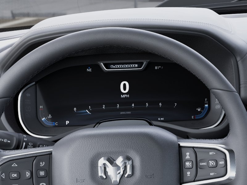 Experience power, luxury, and cutting-edge tech with this new Black 2026 Ram 1500 Laramie 4x4 Crew Cab with only 5 miles on the odometer. The robust Hurricane 3.0L Twin Turbo I6 engine delivers 420hp through an 8-speed automatic transmission and advanced part/full-time 4WD, perfect for any terrain. Enjoy a premium interior with leather-trimmed bucket seats, heated and ventilated front seats, a heated steering wheel, and dual-zone automatic climate control. Stay connected and entertained with a massive 14.4" Uconnect touchscreen, integrated navigation, Harman/Kardon 19-speaker sound system, Apple CarPlay, Android Auto, and 4G LTE Wi-Fi hotspot. Safety comes first with Adaptive Cruise Control, Blind Spot Detection, Surround View Camera System, Active Lane Management, and Pedestrian Emergency Braking. The Night Edition package adds bold style with 22" black forged aluminum wheels, black badging, and a sport performance hood. Additional highlights include a dual-pane panoramic sunroof, spray-in bedliner, power tailgate, trailer tow group, and advanced driver-assist features. This Ram 1500 Laramie sets a new standard for full-size trucks-discover it today!