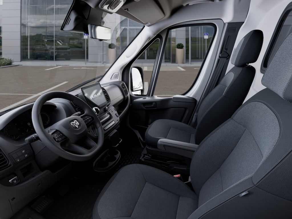 Available now: Brand new 2026 Ram ProMaster Cargo Van Tradesman 2500 High Roof 159" WB with only 2 miles on the odometer. This powerful work van is equipped with a Pentastar 3.6L V6 engine delivering 276hp and 250 ft-lbs of torque, paired with a smooth 9-speed automatic transmission and front-wheel drive for confident handling. The High Roof and extended 159" wheelbase provide exceptional cargo space and versatility, while features like the MOPAR Cargo Compartment Floor Mat and Cargo Partition with Sliding Window keep your workspace organized and secure. Stay connected and in control with Uconnect 5 NAV featuring a 10.1" touchscreen, Apple CarPlay, Android Auto, SiriusXM, Bluetooth, and 4G LTE Wi-Fi Hotspot. Safety is top-tier with Forward Collision Warning-Plus, Pedestrian Emergency Braking, ParkView rear camera, ParkSense Rear Park Assist, Crosswind Assist, and a full suite of airbags. Enjoy added comfort with cloth bucket seats, manual climate control, and a driver seat armrest. Convenience features include power folding heated mirrors, adaptive cruise control with stop and go, rain-sensitive wipers, and keyless entry with push-button start. Ready for the job with heavy duty suspension, 16" steel wheels, all-season tires, and up to 8,900 lbs GVWR.